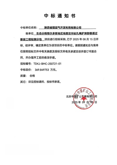 - 鉆井分公司中標張家峁水文地質探查工程2025-09-24
